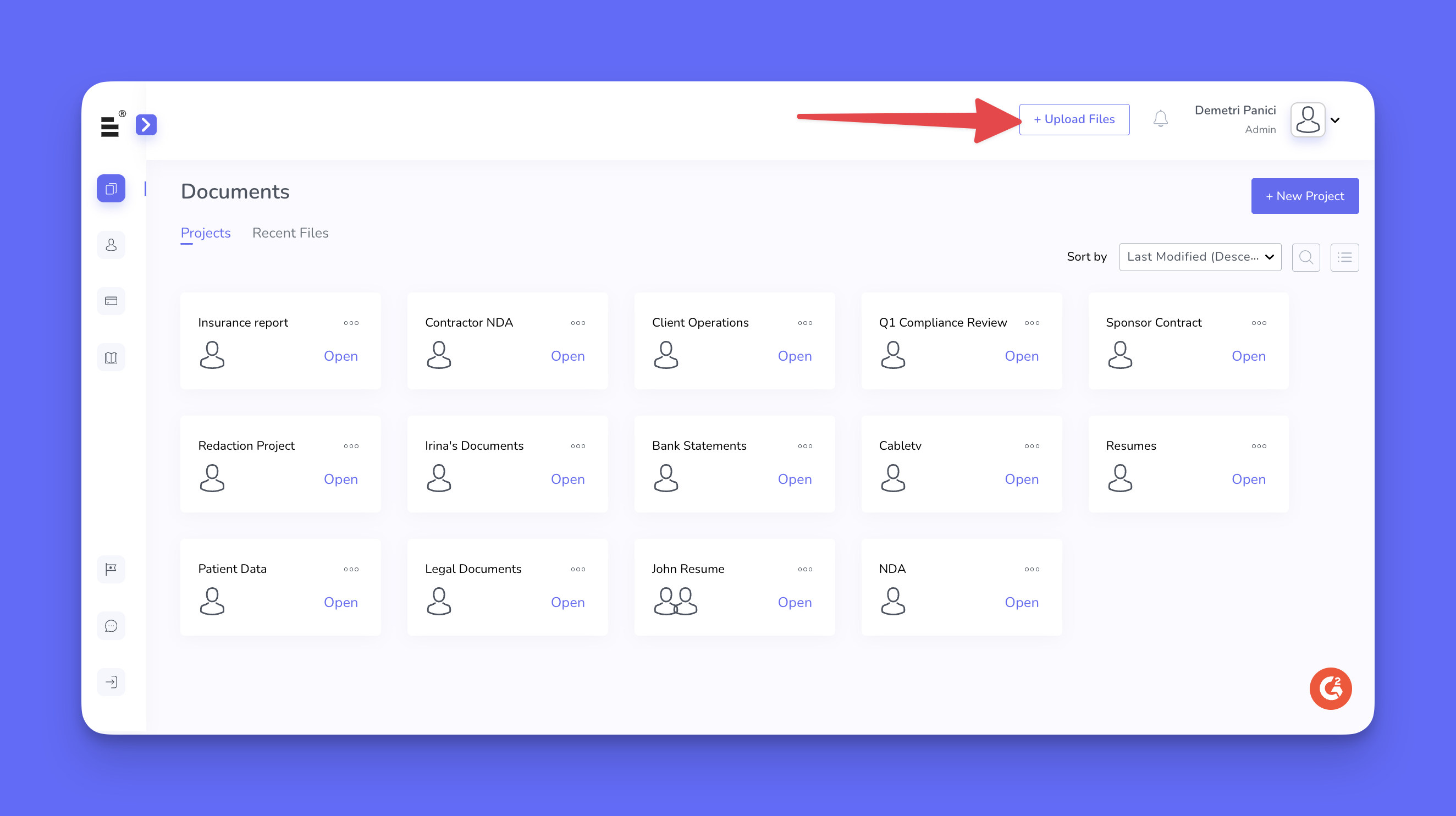1. Click the "+ Upload Files" button and select the file(s) you want to upload.