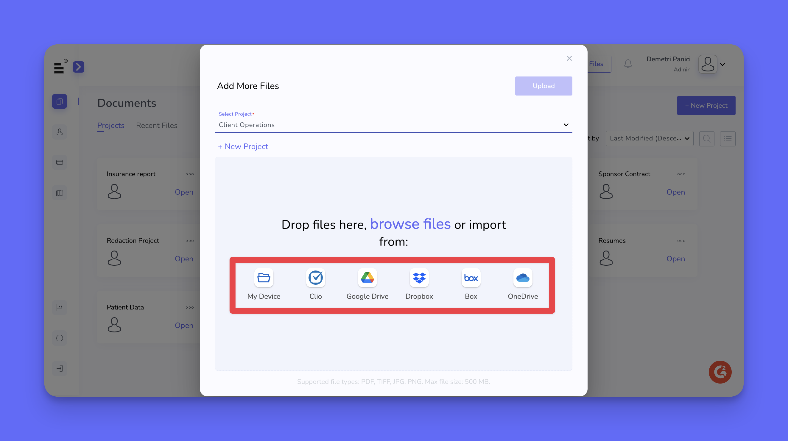 3. You can upload files using drag & drop, your device, or supported third-party services.