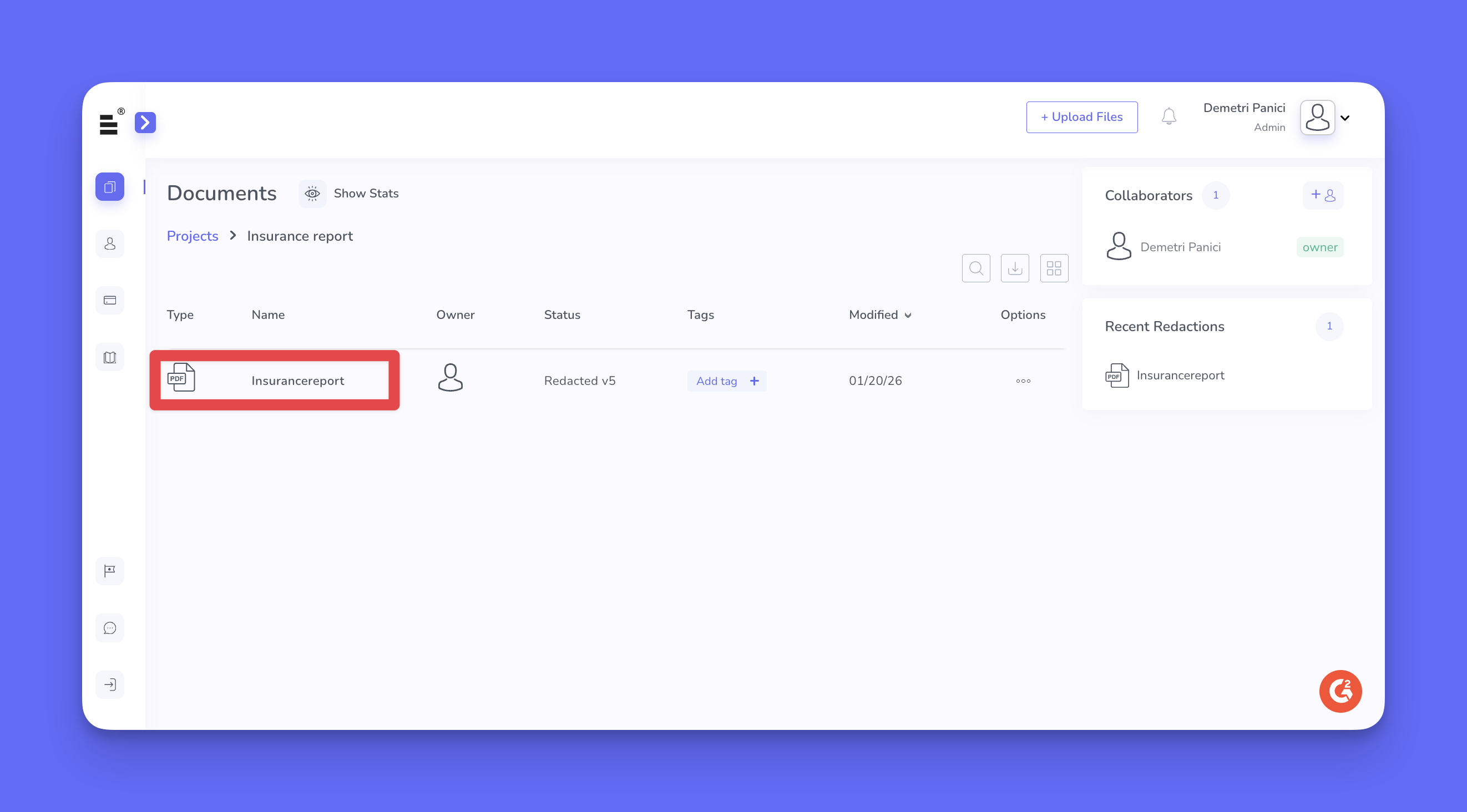 4. Once your file is uploaded, click the file name to open the redaction tool.